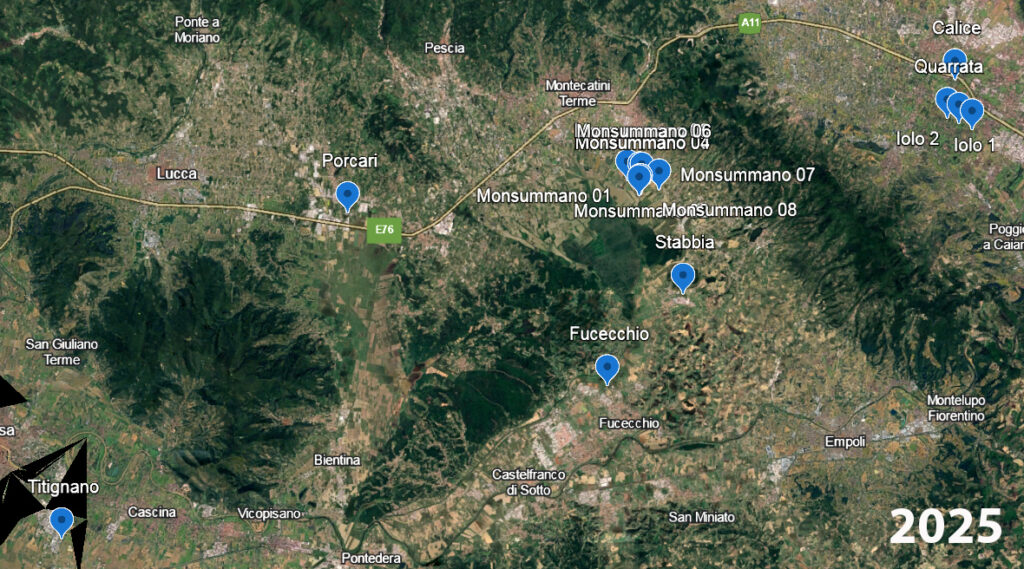 Negli anni successivi ci sono tentativi di nidificazione anche in altri siti, e soprattutto aumentano i nidi a Monsummano Terme: l’area del Fossetto si trasforma in una vera e propria “cittadella” delle cicogne (6 nidi vicini fra di loro nel 2025).